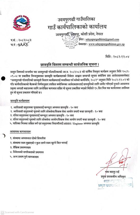 छात्रवृत्ति वितरण सम्बन्धी सार्वजनिक सूचना ।
