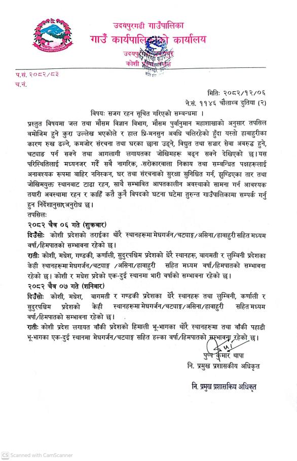 सजग रहन सूचित गरिएको सम्बन्धमा ।