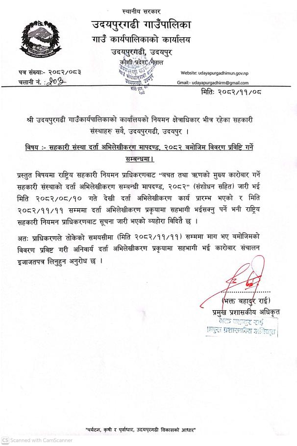 सहकारी संस्था दर्ता अभिलेखिकरण मापदण्ड,२०८२ बमोजिम विवरण प्रविष्टी गर्ने सम्बन्धमा ।