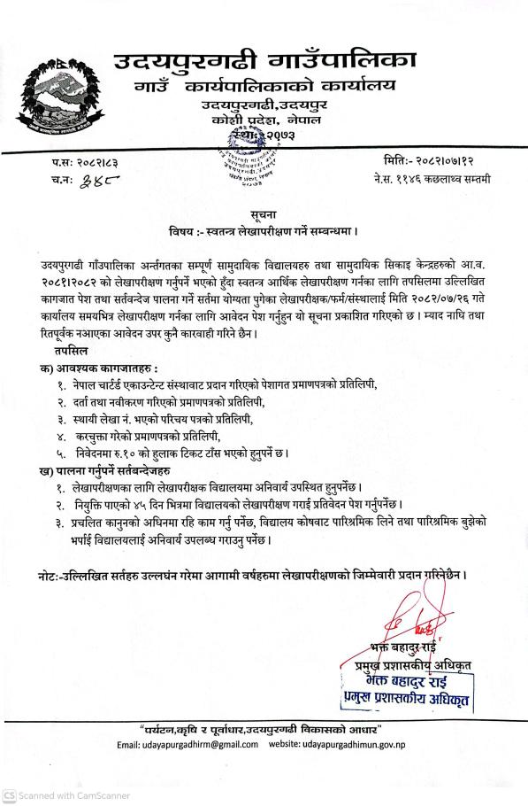 स्वतन्त्र लेखापरीक्षण गर्ने सम्बन्धमा ।