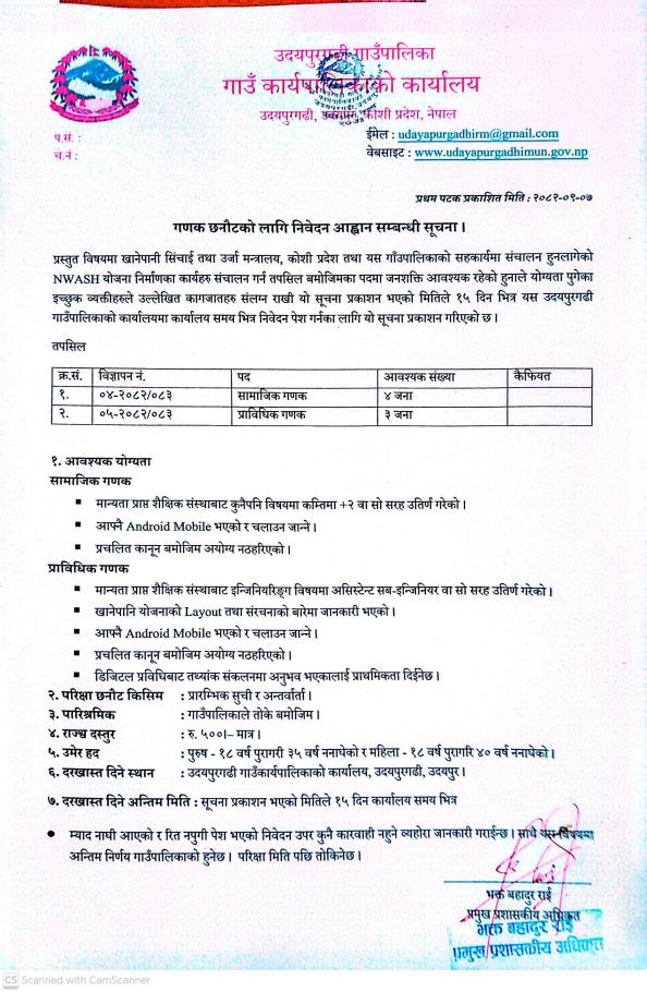 गणक छनौटको लागि निवेदन आह्वान सम्बन्धी सूचना । २०८२-०९-०७