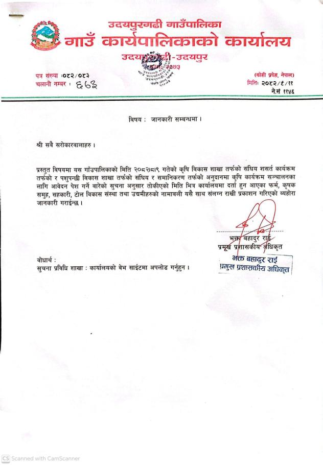 जानकारी सम्बन्धमा । कृषि विकास शाखा - पशुपंक्षी विकास शाखा