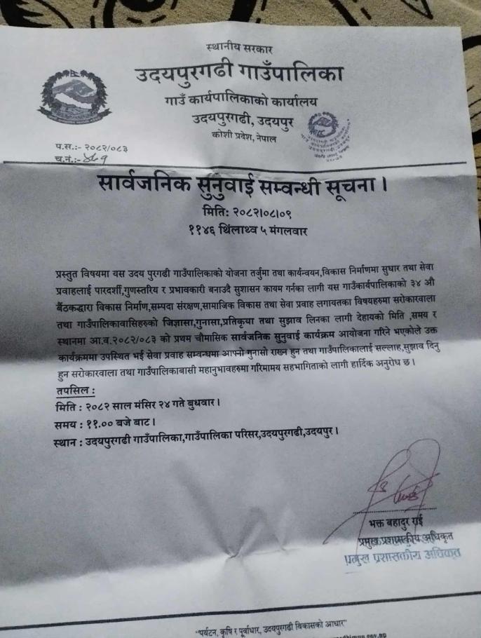 सार्वजनिक सुनुवाई सम्बन्धी सार्वजनिक सूचना । २०८२-०८-०९