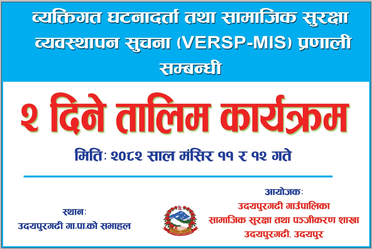 VERSP-MIS प्रणाली सम्बन्धी २ दिने तालिम कार्यक्रम (२०८२ मंसिर ११ र १२ गते)